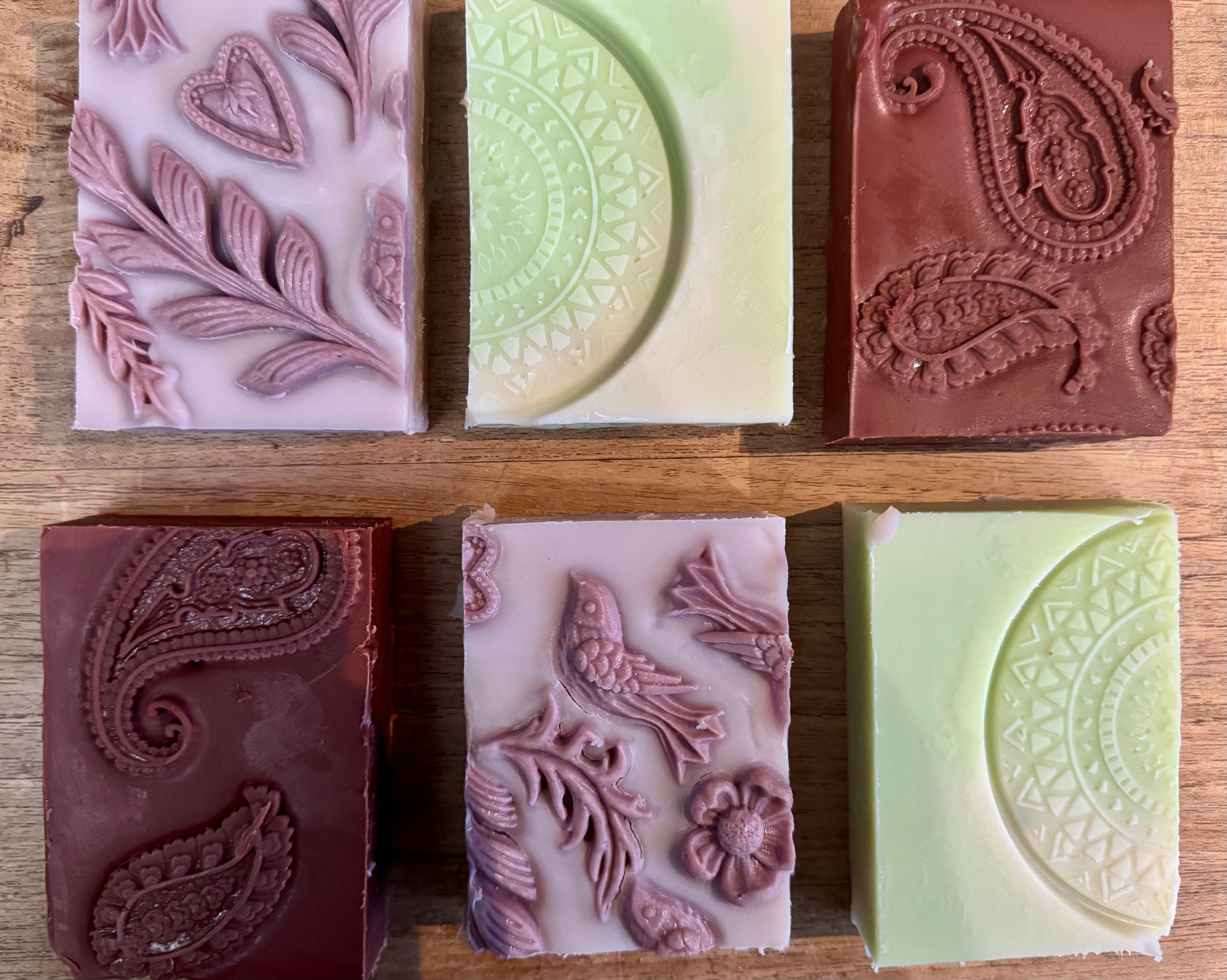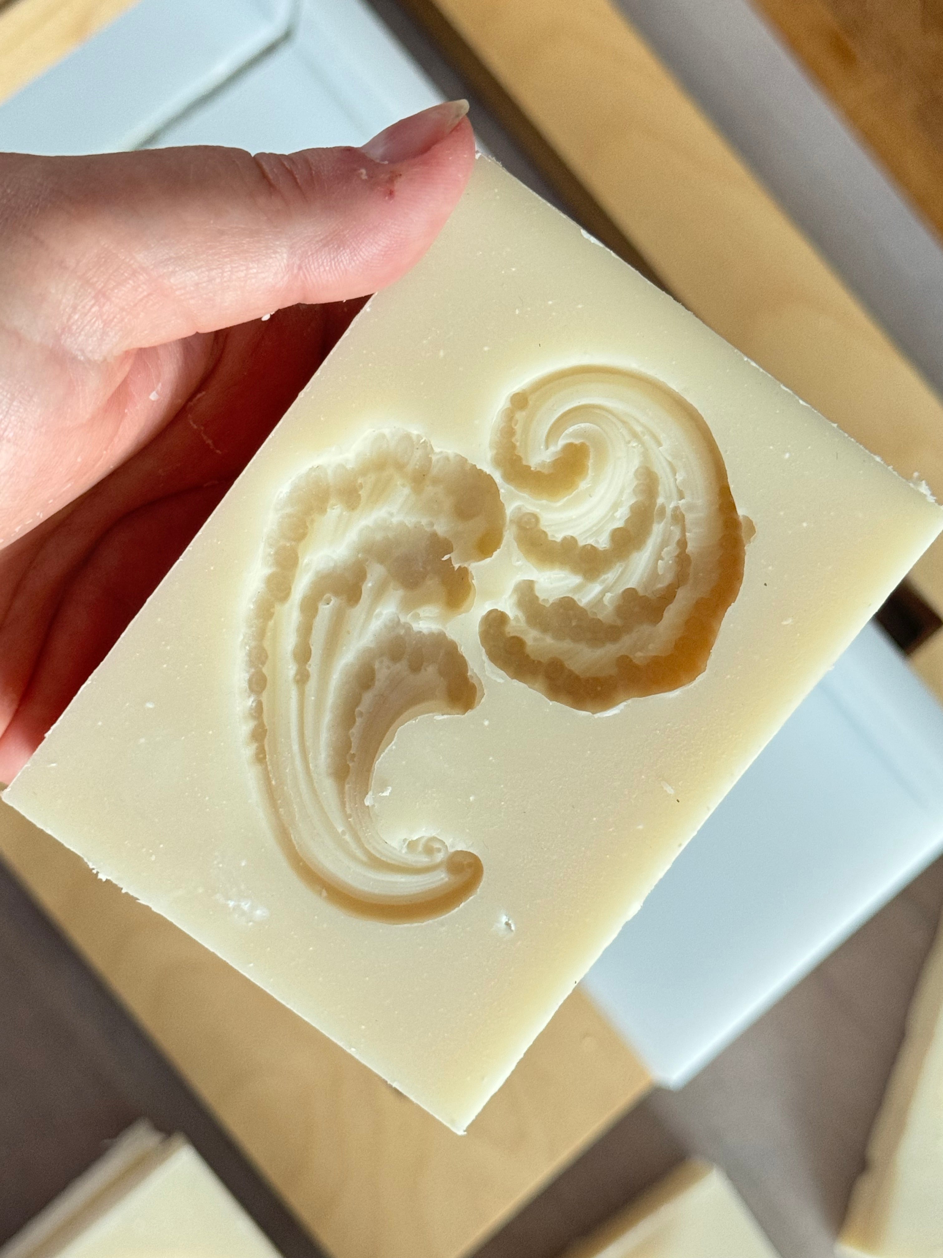 I craft my soaps and shampoos with naturally-derived ingredients, using nourishing oils like coconut, castor, and sunflower, and rich butters like shea and cocoa. Colored with botanicals and mica, and scented with pure essential oils, each bar is made using a traditional, time-honored method, free from harmful additives—for a product you can trust.